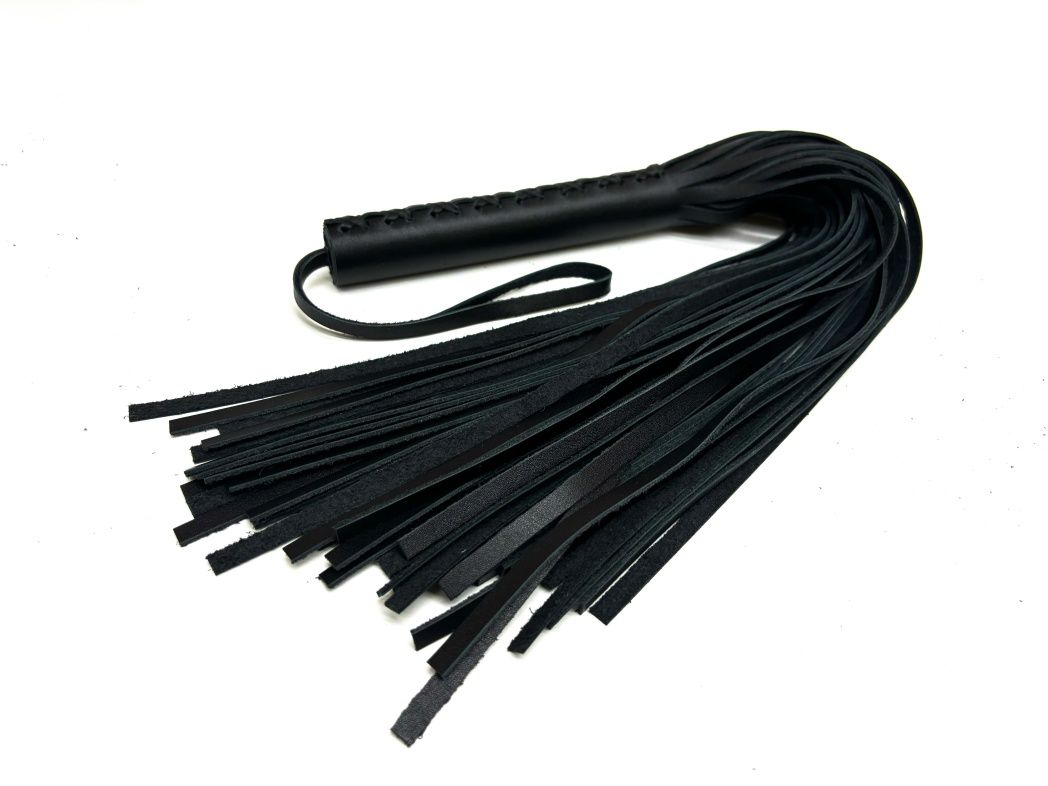 Плеть из натуральной кожи Sex Game - уникальная модель, выполненная из цельного куска гладкой натуральной кожи высокого качества, в классическом черном цвете. Плеть очень пышная и богатая, в ней 50 хвостов! На рукоятке находится плетение, что придает особый шарм. Благодаря своей цельной конструкции, данная плеть прослужит Вам долго, хвосты не оторвутся и сохранят свой благородный вид, аксессуар очень надежный и красивый. Для удобства на рукоятке имеется кожаная петелька. Длина хвостов - 40 см.