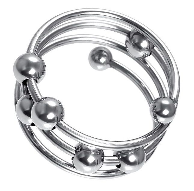 Металлическое кольцо для головки пениса многократно усилит удовольствие обоих партнеров. Кольцо выполнено в виде спирали с многочисленными подвижными бусинами, которые стимулируют самые чувствительные зоны обоих партнеров. При каждом движении шарики массируют уздечку, вход во влагалище и зону G, делая секс более захватывающим. Кольцо фиксируется под головкой полового члена, благодаря чему головка становится более твердой, выраженной и особо чувствительной, а эрекция – продолжительной. Металл – один из самых безопасных и экологичных материалов, его можно использовать со всеми видами смазок и он прост в уходе. Кольцо из металла – особо прочное и тугое, добавьте немного лубриканта для комфортного надевания и снятия. Выбирайте кольцо подходящего диаметра, чтобы испытать максимальное удовольствие. Наденьте кольцо на половой член в эрегированном состоянии, для этого добавьте немного лубриканта. Зафиксируйте кольцо под головкой пениса и убедитесь, что оно плотно прилегает. Не допускайте дискомфорта и не носите кольцо более 30 минут. Как подобрать размер: кольцо не должно быть слишком тугим или болтаться, но при этом оно должно легко надеваться и сниматься. Чтобы правильно подобрать нужный диаметр кольца, снимите 2 мерки с полового члена. Оберните мягкую измерительную ленту вокруг пениса чуть ниже головки и запишите полученные значения: одно - в расслабленном состоянии, другое – в эрегированном. Сложите ваши мерки, разделите на 2, и затем разделите на 3,14. Полученное значение – оптимальный диаметр подходящего вам кольца. Для дополнительной безопасности измерьте самую широкую часть на головке пениса и разделите на 3,14. Зная диаметр шляпки пениса, вы сможете подобрать достаточно удобное кольцо, которое не будет соскальзывать.