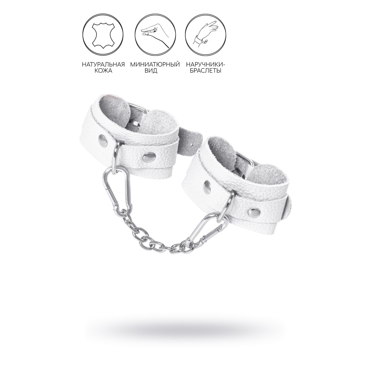 Ищите наручники для миниатюрной ручки? Тогда обратите внимание на эту модель от российского производителя Pecado. Они идеально созданы для обладательниц узкого запястья. Каждый элемент аксессуара изготовлен полностью вручную. Мягкий, белый материал нежно обхватывает руку и оставляет только приятные ощущения от контакта с телом. Аксессуар декорирован качественной фурнитурой, благодаря которой, при необходимости, его легко снять. Соединяются между собой с помощью короткой стальной цепочки и двух колец с карабинами. При правильном использовании не оставляют следов на теле. А особый аромат натуральной кожи придает пикантности сексуальному атрибуту. Длина манжет – 15 см, ширина – 4 см. Длина сцепки – 14 см.