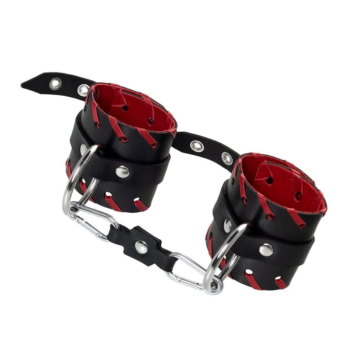 Готовы играть по-взрослому? Не бойтесь своих желаний! Основатели бренда уверены: лучший способ избавиться от искушения - поддаться ему! Добавьте пикантную деталь в ролевую игру и воплотите самую смелую сексуальную фантазию в реальность! Двухслойные кожаные наручники с окантовкой красного цвета, могут стать стильным аксессуаром на «свободных» руках, но могут послужить вашим целям и фантазиям по своему прямому назначению. Наличие двух карабинов и колец позволяет использовать изделие как раздельно – аксессуар-манжеты, так и как наручники для фиксации. К широким металлическим кольцам также можно присоединить и другие аксессуары при помощи карабинов. Благодаря универсальному размеру наручники могут использоваться и мужчинами, и женщинами. Размер легко регулируется с помощью металлических пряжек, органично вписывающихся в общий стиль. Длина манжет - 20 см, ширина манжет - 6,5 см. Длина сцепки - 13 см.