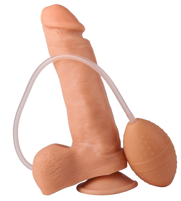 Мечтаете ощутить одновременный оргазм? С этой невероятно чувственной секс-игрушкой из реалистичного приятного на ощупь материала телесного цвета возможно все! Гладкая головка, упругий ствол с прорисованной венозной сеточкой и нежная мошонка вознесут вас на вершину удовольствия. Сожмите грушу, когда ваши ощущения достигнут пика, и фаллоимитатор сымитирует эякуляцию. Присоска в основании игрушки позволяет закрепить его на любой поверхности.