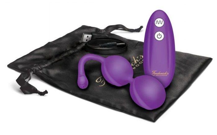 Вагинальные шарики из фиолетового силикона с 7 различными функциями вибраций и пульсаций. Режимы работы переключаются с помощью радиопульта, сами шарики заряжаются от usb. Вибрацией можно управлять с помощью пульта: чтобы подключить пульт к шарикам, нажмите кнопку включения на шариках, огонек будет мигать. Нажмите кнопку включения на пульте, когда огонек престанет мигать, значит устройство синхронизируется. Если хотите использовать игрушку без пульта, то режимы работы переключаются той же кнопкой включения на кончики шнура. Шарики имеют travel-lock (защиту от внезапного включения) для этого задержите кнопку на массажере на 3 секунды. Шарики имеют защиту от брызг. Для полной зарядки требуется до 2 часов, время работы составляет 60 минут. В комплекте черный чехол для хранения, оберточная бумага для коробки и атласная лента с подарочной открыткой в конверте.