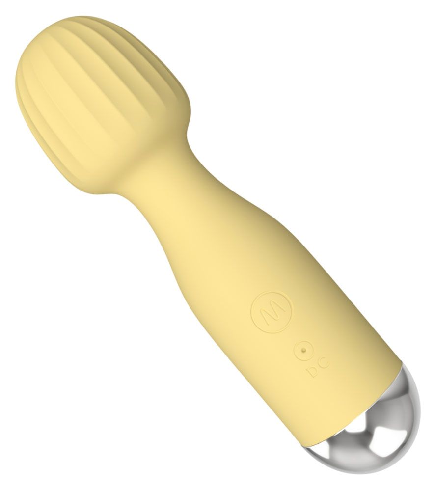 Желтый мини-вибратор с мягкой текстурой. С 10 различными вибрационными режимами и с кабелем зарядки USB.