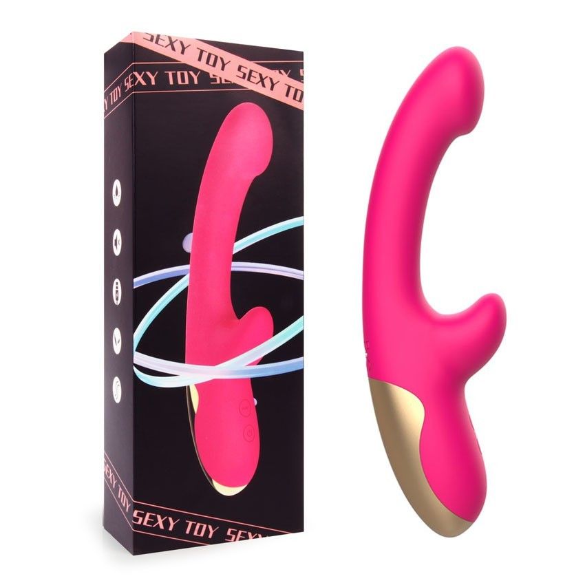 Розовый изогнутый вибромассажер. С коготком для клиторального массажа. 10 режимов вибрации. Рабочая длина - 11,4 см.